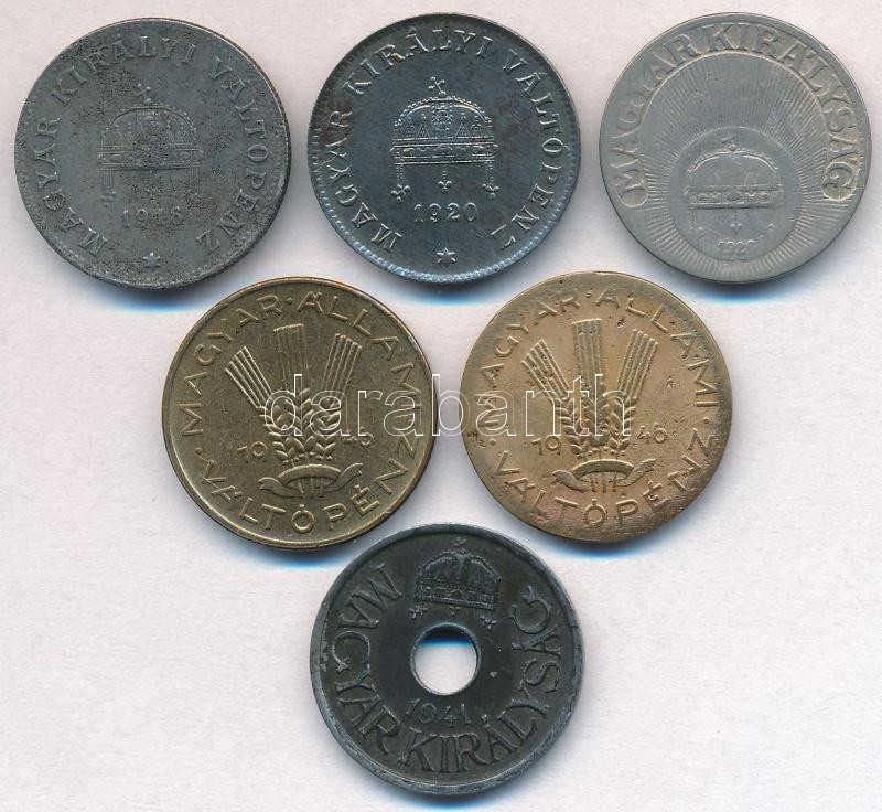 1916-1920. 20f Fe (2x) + 1926. 20f Cu-Ni + 1941. 20f acél + 1946. 20f ... https://www.darabanth.com/hu/306-Gyorsarveres/306.0/Numizmatika/Magyar-es-magyar-verdejelu-fem-es-ezustpenzek~200008/1916-1920-20f-Fe-2x-plus-1926-20f-Cu-Ni-plus-1941-20f-acel-plus-1946-20f-Cu-Al-2x-plus-1953-1996-20f-A~II1653508