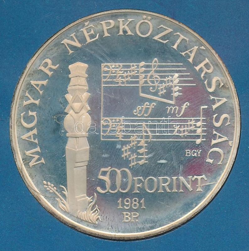 Leírás: 1981. 500Ft Ag "Bartók Béla" MNB tokban T:1-(PP) ragasztásnyom a tokon