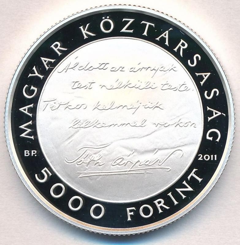 Leírás: 2011. 5000Ft Ag "Tóth Árpád" tanúsítvánnyal T:PP