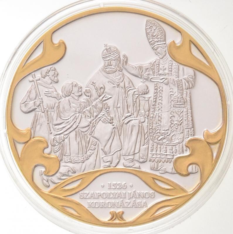 Leírás: DN "A Szent Korona évezrede - Szapolyai János koronázása 1526" aranyozott, ezüstözött Cu emlékérem tanúsítvánnyal (40mm) T:PP
