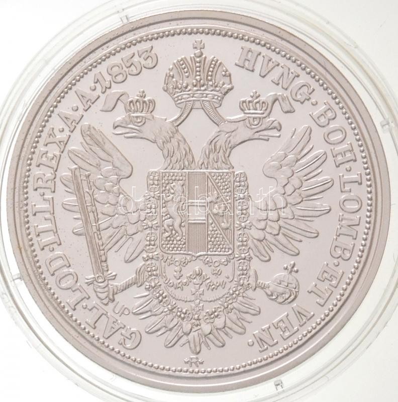 Leírás: DN "Tallértörténelem - Ferenc József tallér 1853" aranyozott és ezüstözött Cu-Zn emlékérem tanúsítvánnyal (38,61mm) T:PP