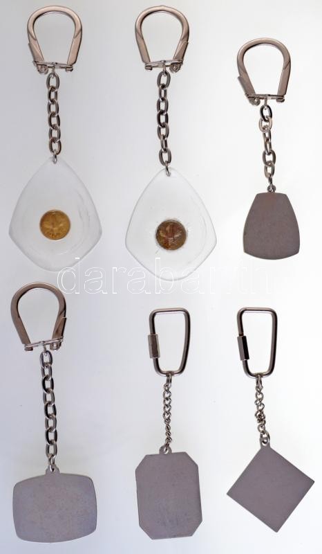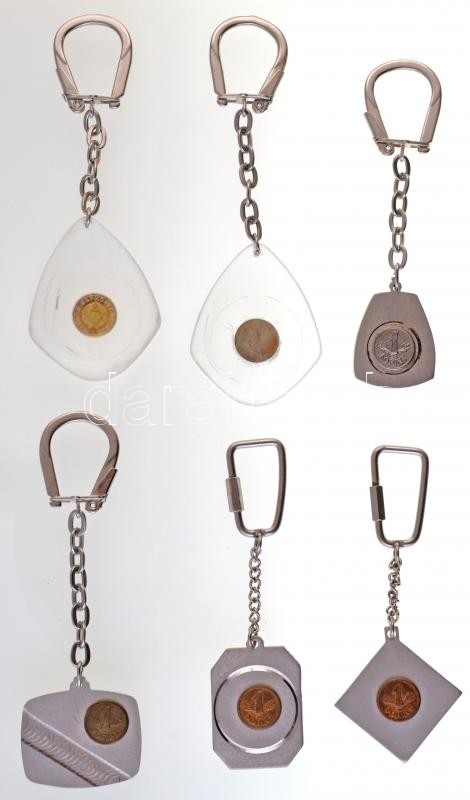 Leírás: 6db-os kulcstartó gyűjtemény, mindegyikben egy-egy mini 1Ft-ossal