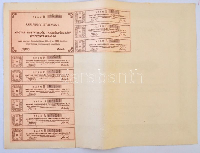 Budapest 1910. "Magyar Tisztviselők Takarékpénztára Részvénytársa... https://www.darabanth.com/hu/306-Gyorsarveres/306.0/Numizmatika/Reszvenyek-es-sorsjegyek~200005/Budapest-1910-Magyar-Tisztviselok-Takarekpenztara-Reszvenytarsasag-bemutatora-szolo-rC3~II1654305