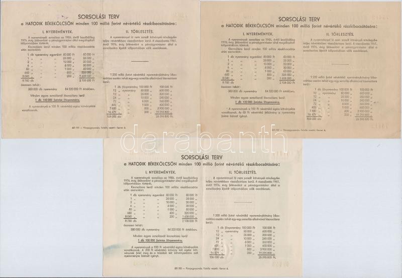 Leírás: Budapest 1955. "Hatodik Békekölcsön" nyereménykölcsön 50, 100 és 200Ft-ról (3xklf) mind szárazpecséttel T:III