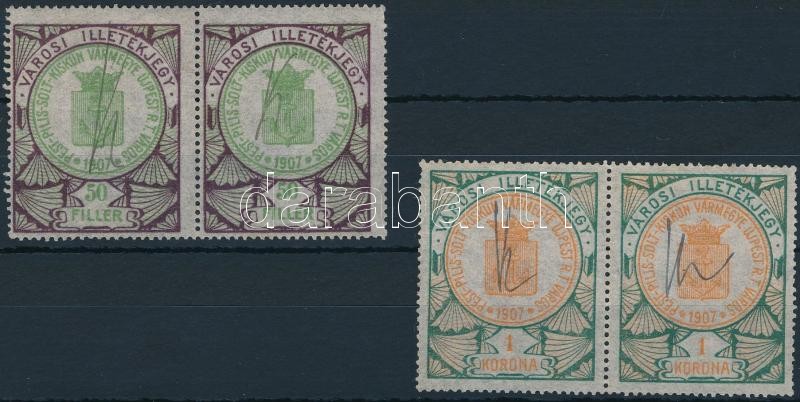 Leírás: 1913 Újpest városi illetékbélyegek párban 3-4 sz. (10.000)