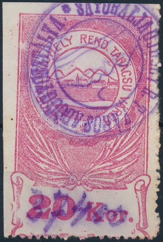 Leírás: 1923 Sátoraljaújhely városi illetékbélyeg 37.400/20K kézzel átírt névértékkel, két oldalon fogazatlan (18.000)