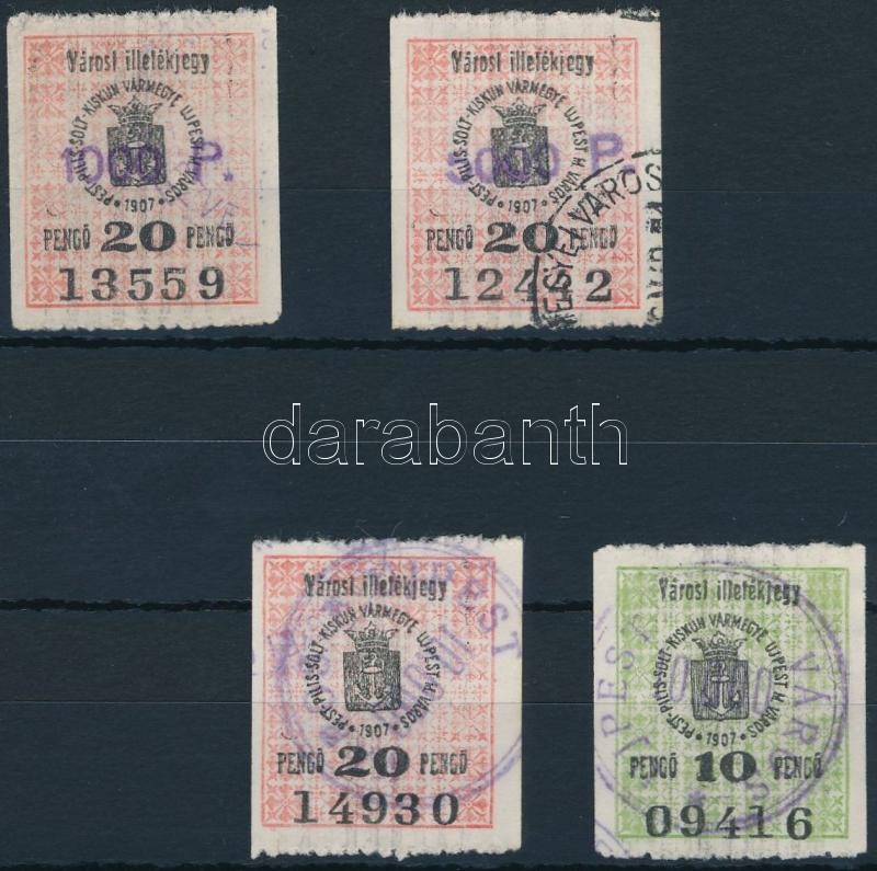 Leírás: 1945-46 Újpest városi illetékbélyegek 55 + 57-59 sz (22.000)