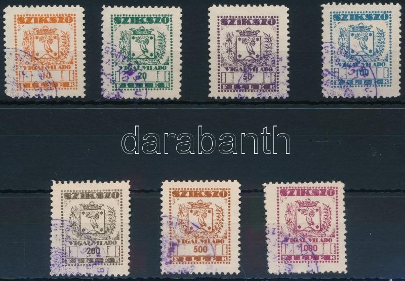 Leírás: 1948 Szikszó Vigalmi adóbélyeg 8-9 + 11-14 sz.-ig I. típus, 10 sz. II. típus (21.000)