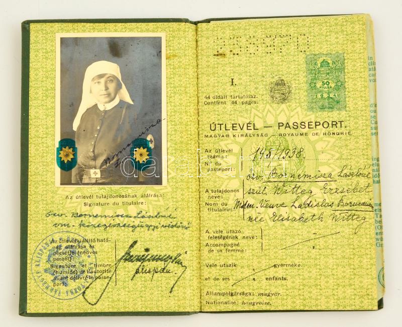 1938 Keményfedeles útlevél Vöröskeresztes nővér részére / Passport for... https://www.darabanth.com/hu/307-Gyorsarveres/307.0/Festmeny-mutargy-papirregiseg-egyeb/Okmanyok~17/1938-Kemenyfedeles-utlevel-Voroskeresztes-nover-reszere-Passport-for-Red-Cross-nun~II1663958