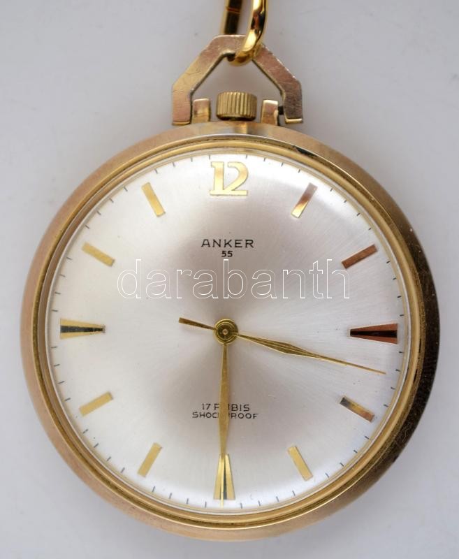 Anker 55 aranyszínű zsebóra lánccal, működik, jó állapotban https://www.darabanth.com/hu/307-Gyorsarveres/307.0/Festmeny-mutargy-papirregiseg-egyeb/Orak~10/Anker-55-aranyszinu-zsebora-lanccal-mukodik-jo-allapotban~II1666560