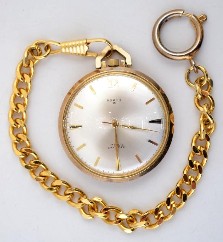 Leírás: Anker 55 aranyszínű zsebóra lánccal, működik, jó állapotban