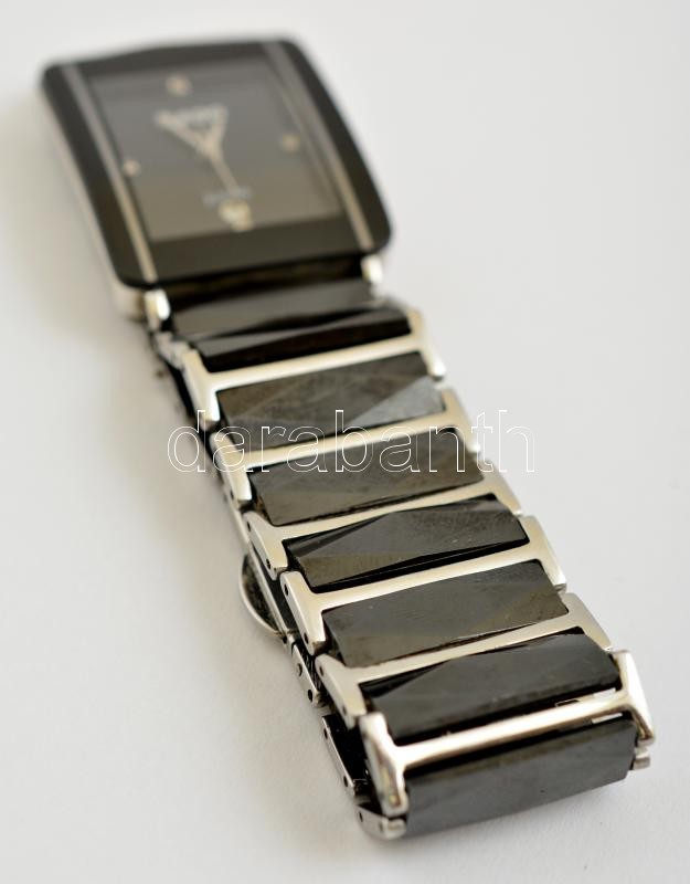 Rado Jubilé Diastar kerámia és fém tokos és szíjas, extra karcálló, naptáras férfi karóra. Svájci óra kvarc szerkezettel. A számlapon négy brillel. Kiváló, működő állapotban. / Rado Jubilee ceramic watch with 4 brills, in nice working condition.