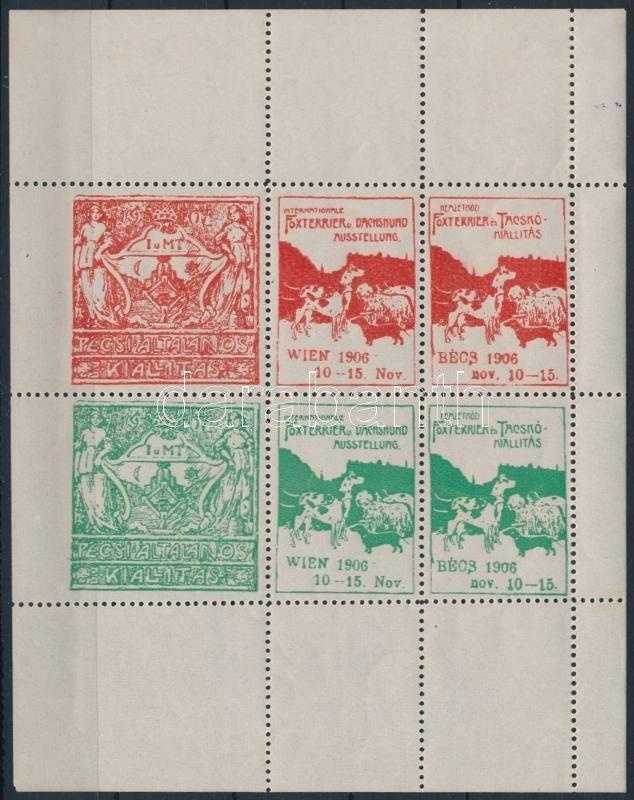 Leírás: 1906 Pécsi emlékkiállítás, bécsi Foxterrier és tacskó kiállítás levélzáró 6-os kisív