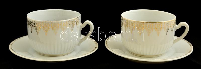 Leírás: Zsolnay teás csésze és alj (csak az alj jelzett) párban (2db), matricás, kopott aranyozás