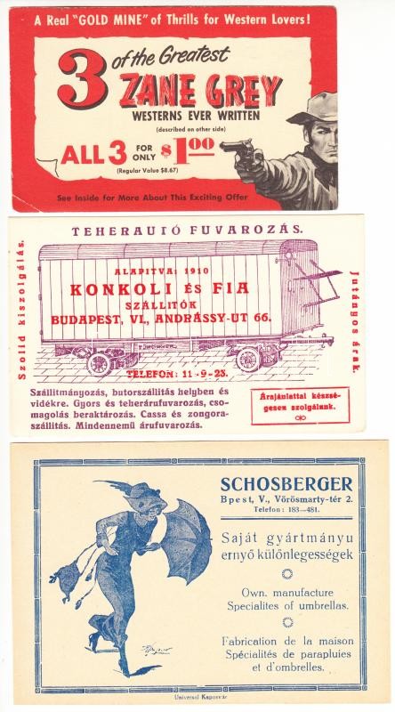 4 db különféle érdekes reklámlap https://www.darabanth.com/hu/307-Gyorsarveres/307.0/Festmeny-mutargy-papirregiseg-egyeb/Reklam~27/4-db-kulonfele-erdekes-reklamlap~II1665071