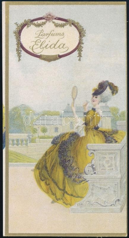 Leírás: cca 1900 Elida Illatszer és Pipereszappangyár Rt. litho reklámlap, 15x8 cm