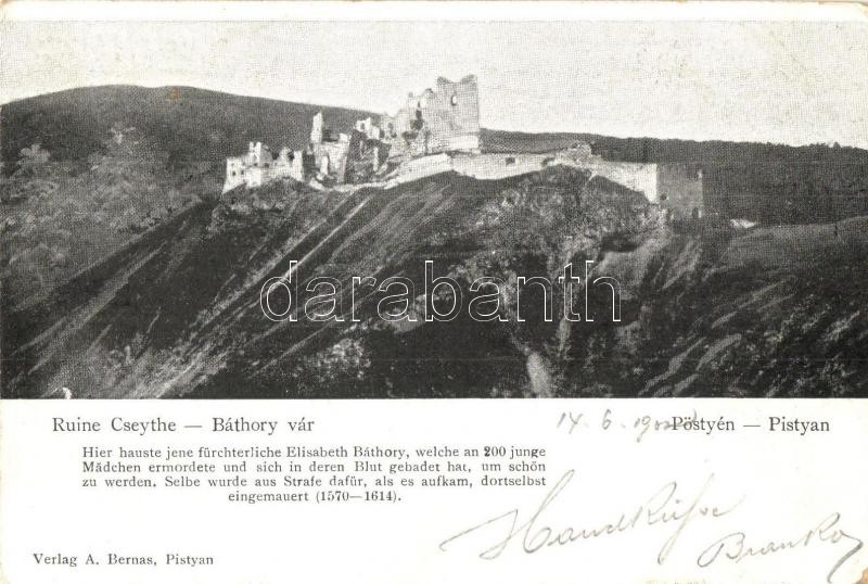 Csejte, Cachtice; Hrad Báthorovcov / Báthory várrom. A. Bernas kiadása... https://www.darabanth.com/hu/307-Gyorsarveres/307.0/Kepeslapok/Felvidek~400007/Csejte-Cachtice-Hrad-Bathorovcov-Bathory-varrom-A-Bernas-kiadasa-castle-ruins-Rb~II1662250