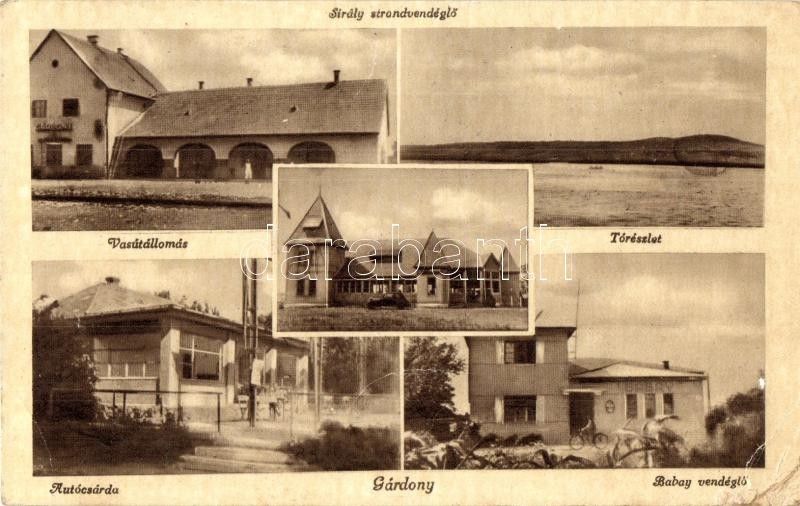Gárdony, vasútállomás, Sirály strandvendéglő, Babay vendéglő, Autócsár... https://www.darabanth.com/hu/307-Gyorsarveres/307.0/Kepeslapok/Magyarorszag~400005/Gardony-vasutallomas-Siraly-strandvendeglo-Babay-vendeglo-Autocsarda-EK~II1658040