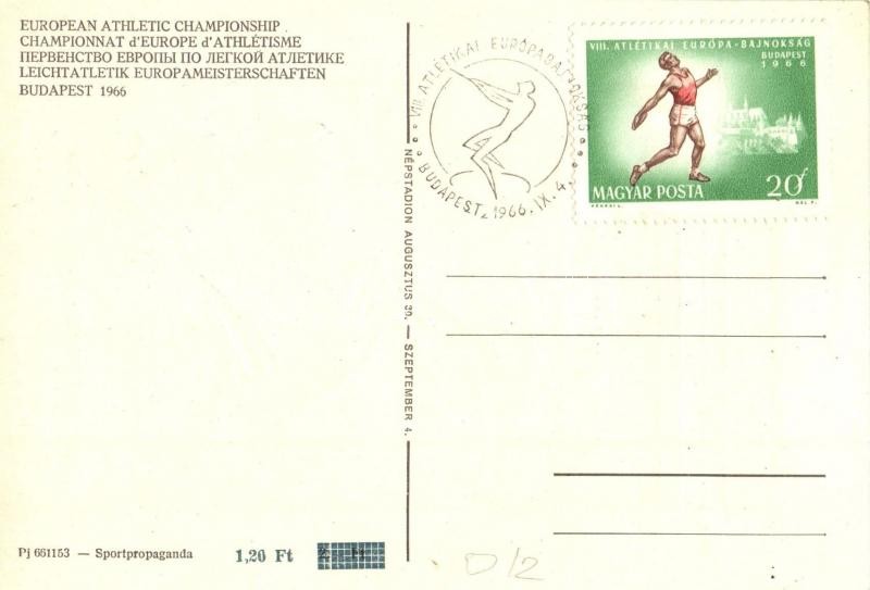 1966 VIII. Atlétikai EB. Sportpropaganda / European Athletic Champions... https://www.darabanth.com/hu/307-Gyorsarveres/307.0/Kepeslapok/Sport~400091/1966-VIII-Atletikai-EB-Sportpropaganda-European-Athletic-Championship-advertisement-card-So-S~II1667100