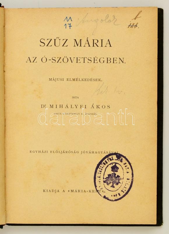 Dr. Mihályfi Ákos: Szűz Mária az Ó-Szövetségben. Májusi elmélkedések. ... https://www.darabanth.com/hu/307-Gyorsarveres/307.0/Konyvek/Konyvek-Vallas~500013/Dr-Mihalyfi-Akos-Szuz-Maria-az-O-Szovetsegben-Majusi-elmelkedesek-Bp-en-Maria-Ker~II1643974