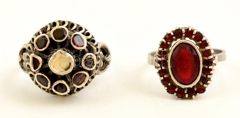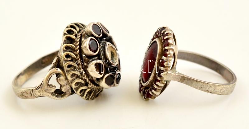 Leírás: Ezüst(Ag) gyűrű, 2 db, gránáttal, jelzéssel, jelzés nélkül, javításra szorul, bruttó: 9,9 g
