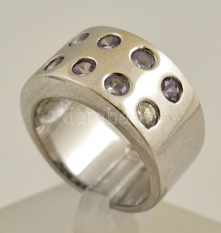 Leírás: Ezüst(Ag) gyűrű, szintetikus kövekkel, jelzett, méret: 54, bruttó: 9,5 g