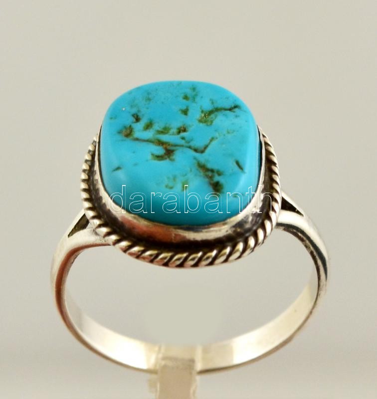 Leírás: Ezüst(Ag) gyűrű, türkizzel díszítve, jelzett, méret: 63, bruttó: 5,7 g