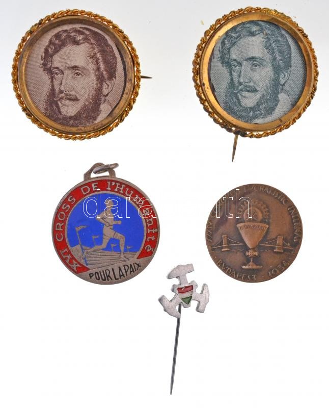 5db-os jelvény és medál tétel, közte Madarassy Walter (1909-1994) 1938. "XXXIV. Nemzetközi Eucharisztikus Kongresszus Budapest" fém jelvény (29,5mm); DN "Magyar Dolgozók Országos Hivatásszervezete" festett fém kitűző; Franciaország ND "XVI CROSS DE l'HUMANITÉ - POUR LAPAIX" zománcozott fém medál T:2