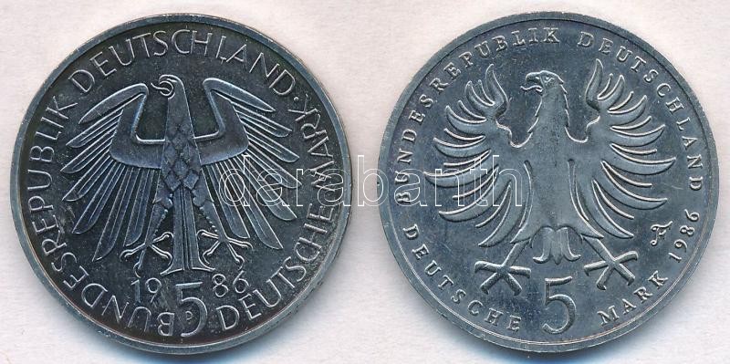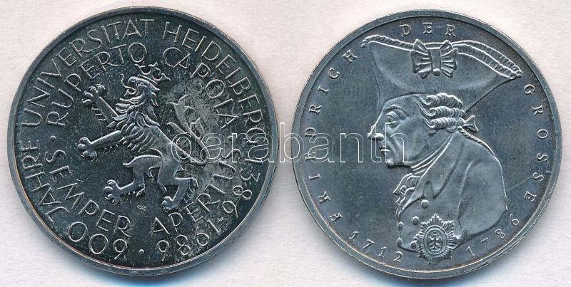 1986D 5M Cu-Ni "600 éves a Heidelberg Egyetem" + 1986F 5M Cu-Ni "II. Frigyes halálának 200. évfordulója" T:1-