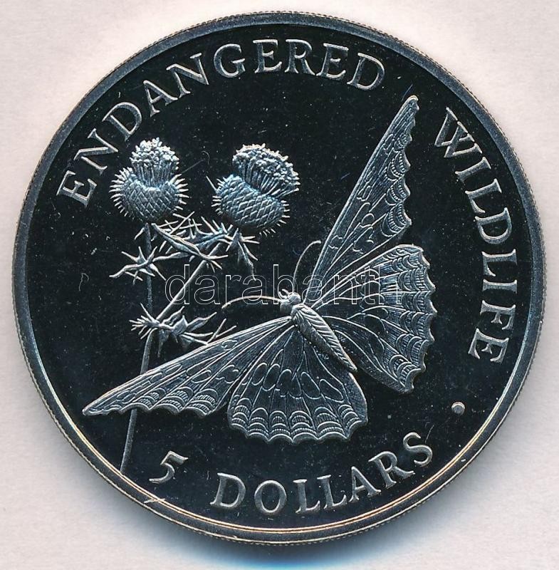 Leírás: Cook-szigetek 1992. 5$ Ag "Veszélyeztetett Állatvilág - Pillangó" T:BU