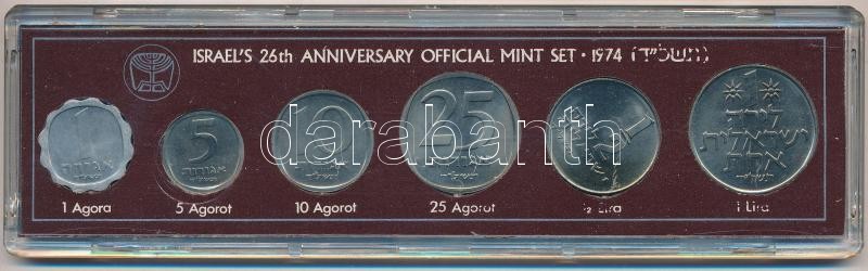 Israel 1974. 1 Agora - 1 Lira (6xdiff) coin set with certificate C:UNC