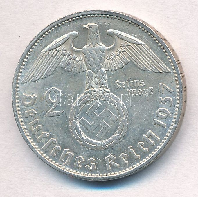 Germ... https://www.darabanth.com/hu/307-Gyorsarveres/307.0/Numizmatika/Kulfoldi-fem-es-ezustpenzek~300013/Nemet-Harmadik-Birodalom-1937E-2M-Ag-Hindenburg-T2---German-Third-Reich-1937E-2-Mark-Ag-Hindenb~II1660329