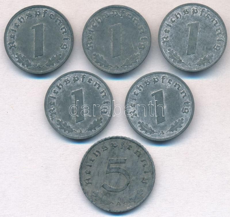 Leírás: Német Harmadik Birodalom 1940-1943. 1pf Zn (5x) + 5pf Zn T:2,2-