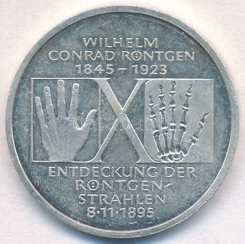 Németország 1995D 10M Ag "150 éve született Wilhelm Conrad Röntgen - 100 éves az X-sugár" T:1-(PP)
