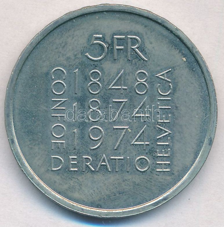 Leírás: Svájc 1974. 5Fr Cu-Ni "Alkotmány módosítás 100. évfordulója" T:1-