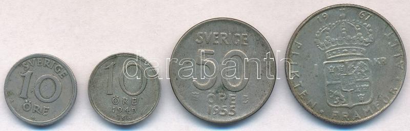 Leírás: Svédország 1923W 10ö Ni-Br + 1949TS 10ö Ag + 1955TS 50ö Ag + 1967U 1K Ag T:2-,3