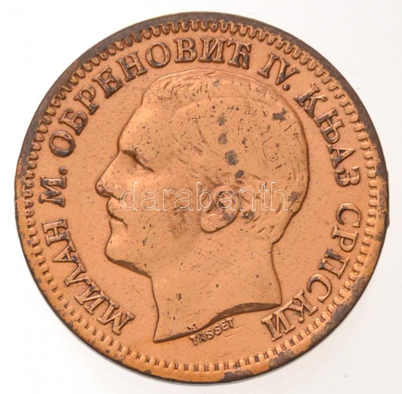 Serbia 1879... https://www.darabanth.com/hu/307-Gyorsarveres/307.0/Numizmatika/Kulfoldi-fem-es-ezustpenzek~300013/Szerbia-1879-5p-Br-I-Milan-aranyozva-T2-2---Serbia-1879-5-Para-Br-Milan-I-with-gold-plating~II1664259