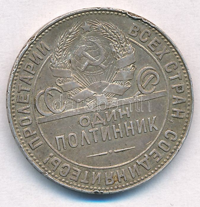 Soviet Union 1924. 50 Kopeks Ag C... https://www.darabanth.com/hu/307-Gyorsarveres/307.0/Numizmatika/Kulfoldi-fem-es-ezustpenzek~300013/Szovjetunio-1924-50k-Ag-T2-2-ph---Soviet-Union-1924-50-Kopeks-Ag-CXF-VF-edge-error---Krause-Y23~II1660319
