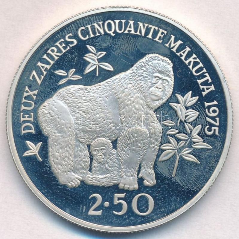 Leírás: Zaire 1975. 2 1/2Z Ag "Hegyi gorilla" T:PP ujjlenyomat