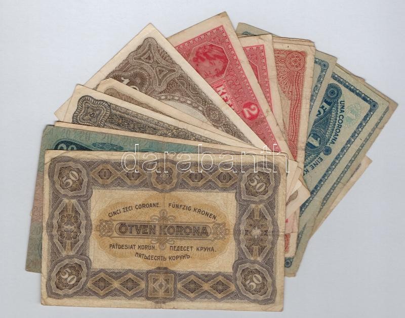 Leírás: 1913-1923. 20db-os vegyes magyar korona bankjegy tétel T:III,III-