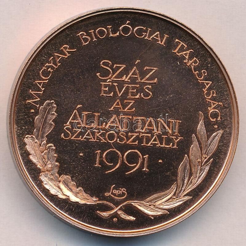 Leírás: Lapis András (1942-) 1991. "Magyar Biológiai Társaság - Száz éves az Állattani Szakosztály" Br piefort emlékérem (42,5mm) T:1-