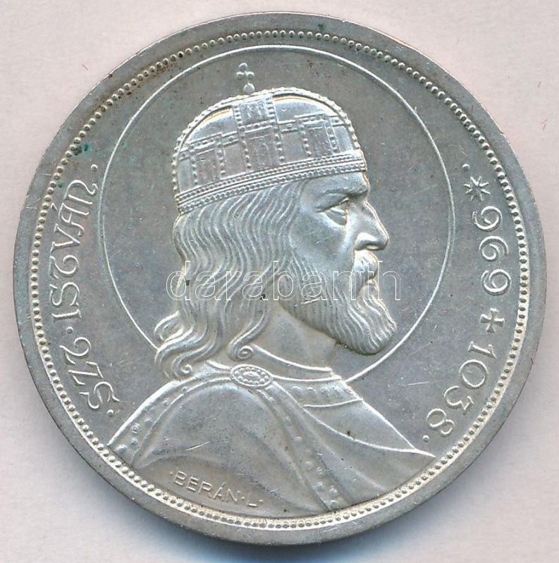 Leírás: 1938. 5P Ag "Szent István" T:1-,2 kis patina, hátlapra felirat karcolva
