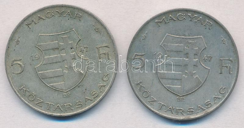Leírás: 1947. 5Ft Ag "Kossuth" (2x) T:2,2- kis patina