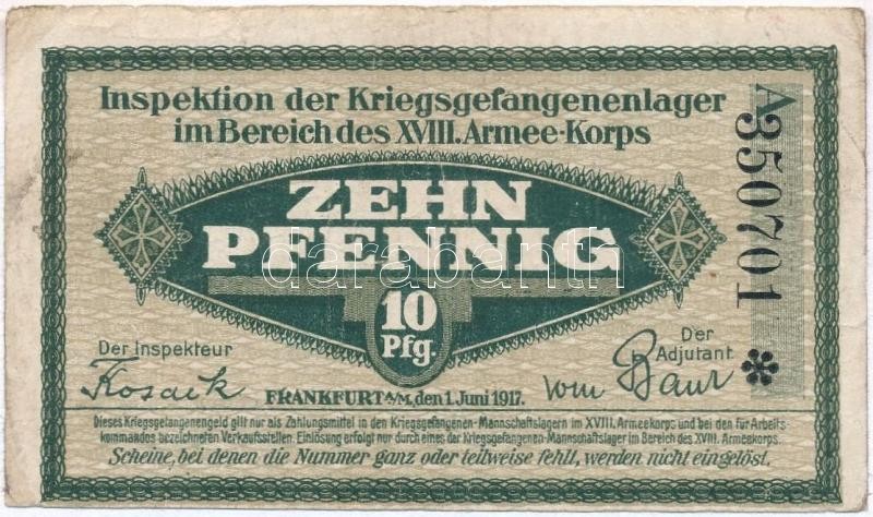 Német Birodalom / Frankfurt hadifogolytábor a XVIII. alárendeltségében 1917. 10pf T:III-
