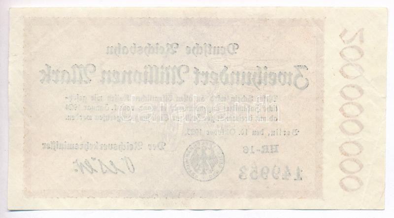 Germany / Weimar Republic / Berlin 1923. 200.000.000 Mark necessity note on watermarked paper C:F