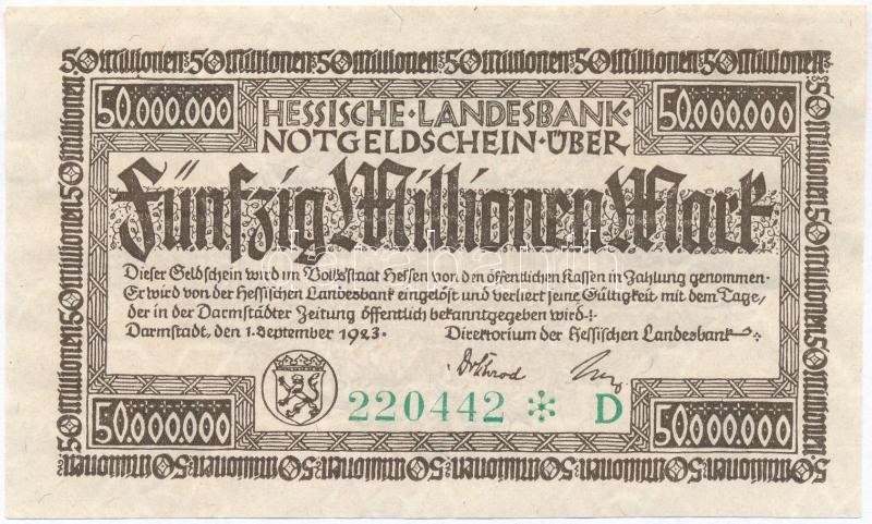 Leírás: Németország / Weimari Köztársaság / Darmstadt 1923. 50.000.000M szükségpénz vízjeles papíron T:II