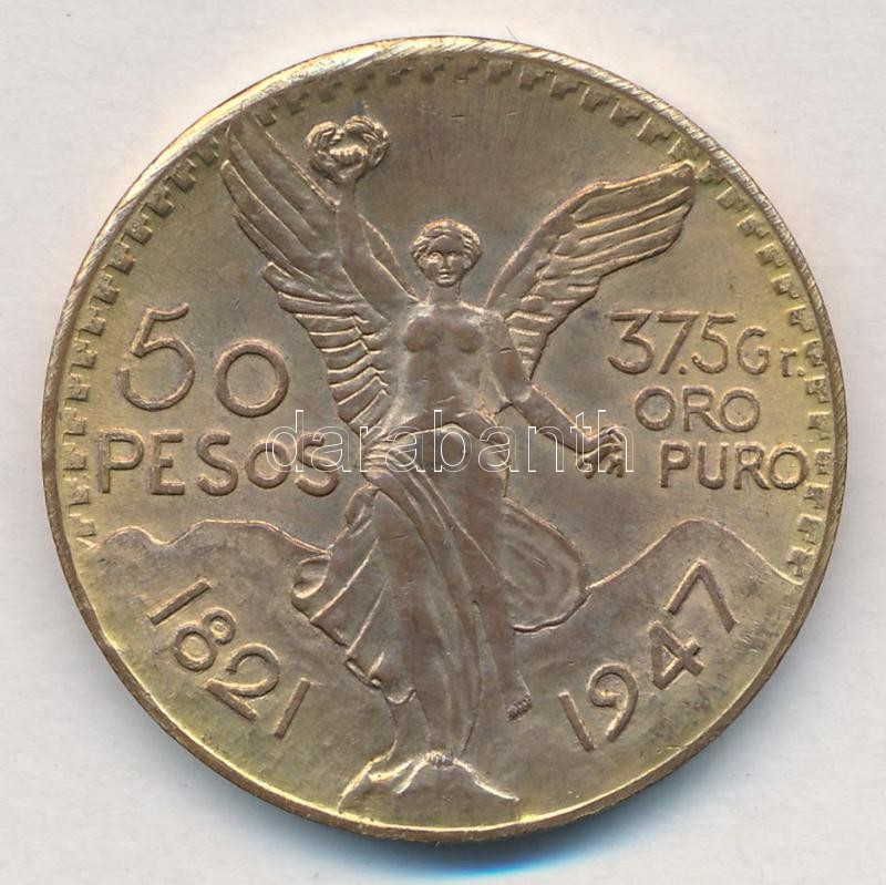 Mexico 1947. 50 Pesos... https://www.darabanth.com/hu/307-Gyorsarveres/307.0/Numizmatika/Replikak-es-hamisitvanyok~300018/Mexiko-1947-50P-aranyozott-Br-hamisitvanya-T2--Mexico-1947-50-Pesos-gold-plated-Br-fake-CXF~II1641422