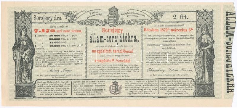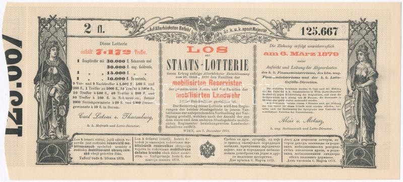 Ausztria / Bécs 1878. "Sorsjegy állam-sorsjátékra a közös hadsereg mozgósított tartalékosai s az osztrák és magyar állam mozgósított honvédei családjai javára" T:I-