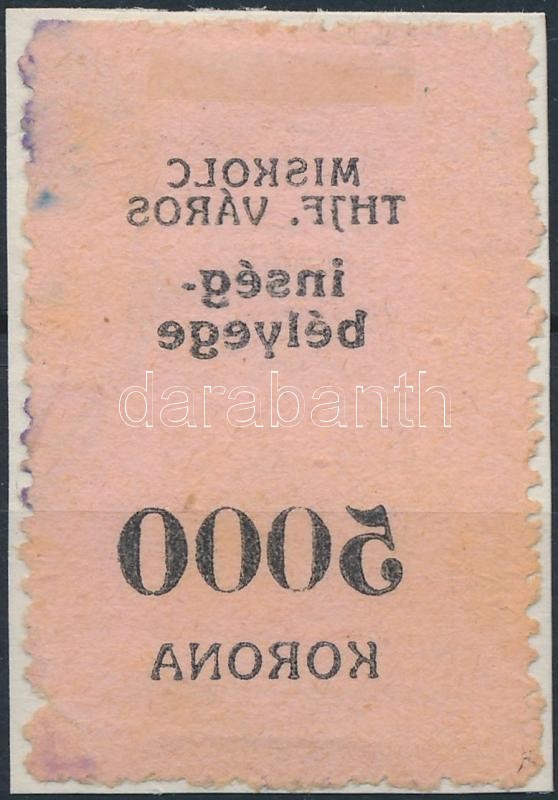 Leírás: 1923 Miskolc városi Ínség bélyeg 5.000K gépszínátnyomattal (8.000)