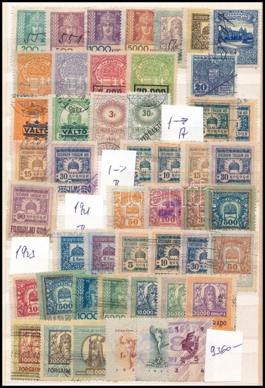 Törvényszéki és egyéb illetékbélyegek, közepes berakólapon (9.360) https://www.darabanth.com/hu/308-Gyorsarveres/308.0/Festmeny-mutargy-papirregiseg-egyeb/Okmanybelyegek~15/Torvenyszeki-es-egyeb-illetekbelyegek-kozepes-berakolapon-9360~II1677371